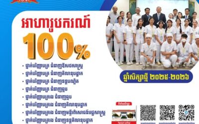 អាហារូបករណ៍១០០% សម្រាប់ទីតាំង សាខាសាកលវិទ្យាល័យ ខេត្តបាត់ដំបង សូមកុំអោយឱកាសល្អនេះរំលងផុតទៅឲ្យសោះ ដោយចំនួនមានកំណត់! សំណើរស្នើសុំអាហារូបករណ៍ក្នុងវិស័យសុខាភិបាល (https://forms.gle/5zCK9pM2mnGCCzmh8) សម្រាប់ព័ត៍មានលម្អិត៖ រាជធានីភ្នំពេញ : សេចក្តីជូនដំណឹង អាហារូបករណ៍...