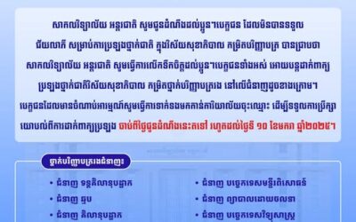 ក្នុងរយៈកាល២៣ឆ្នាំមកនេះ ក្នុងបុព្វហេតុអភិវឌ្ឍធនធានមនុស្សនៅកម្ពុជា សាកលវិទ្យាល័យ អន្តរជាតិ បានបំពេញបេសកកម្មរបស់ខ្លួនជាច្រើនសន្ធឹកសន្ធាប់ ក្រោមទិសស្លោក “គុណភាពជាចម្បង” ដោយគាំទ្រ និង ចូលរួមអនុវត្តគោលនយោបាយទាំងឡាយរបស់រាជរដ្ឋាភិបាលកម្...