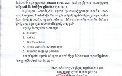 សេចក្ដីជូនដំណឹង សាកលវិទ្យាល័យអន្តរជាតិ សហការជាមួយ Presbyterian Medical Center ប្រទេសកូរ៉េ នឹងរៀបចំសិក្ខាសាលា ពិសេសស្តីពី “បាឋកថាវេជ្ជសាស្ត្រស្តារនីតិសម្បទា ឆ្នាំ ២០២៥” នៅថ្ងៃទី ១៣ ខែកញ្ញា ឆ្នាំ ២០២៥ នៅទីតាំង សាកលវិទ្យាល័យអន្តរជាតិ