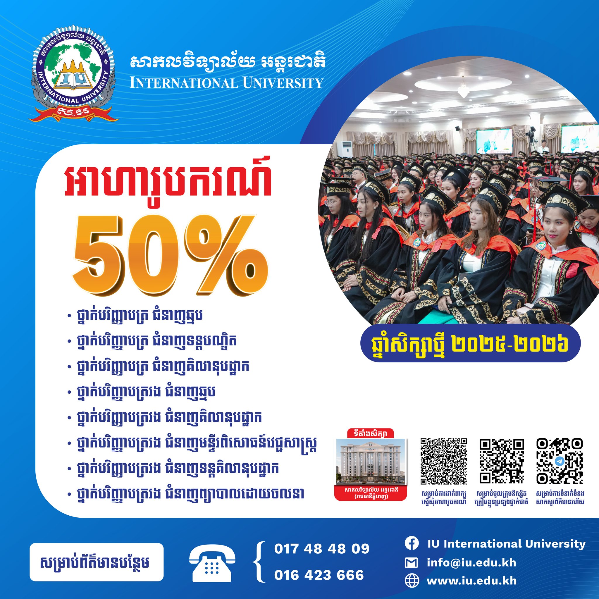 ឥឡូវនេះ សាកលវិទ្យាល័យ អន្តរជាតិ កំពុងផ្តល់ អាហារូបករណ៍ជាច្រើនកន្លែង សម្រាប់ថ្នាក់ បរិញ្ញាបត្រ និង បរិញ្ញាបត្ររង នៅក្នុងវិស័យសុខាភិបាល។